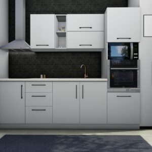 • Componenta: Dulapuri superioare și inferioare, blat, mânere, balamale, șuruburi, suporturi de montaj