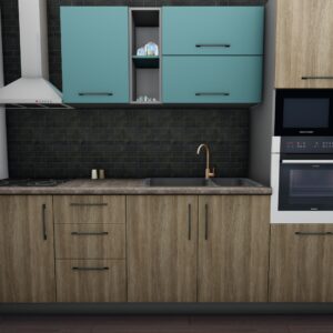 - Componenta: Dulapuri superioare și inferioare, blat, mânere, balamale, șuruburi, suporturi de montaj
